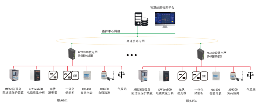 沿途共設有中牟、鄭州北、澠池、漯河、許昌、靈寶、長葛、商丘、開封等多個服務區、收費站,實現每個站點的智慧管理以及優化控制,完成新能源消納、防逆流等控制需求。 提升各個站點的安全可靠、綠色經濟運行。