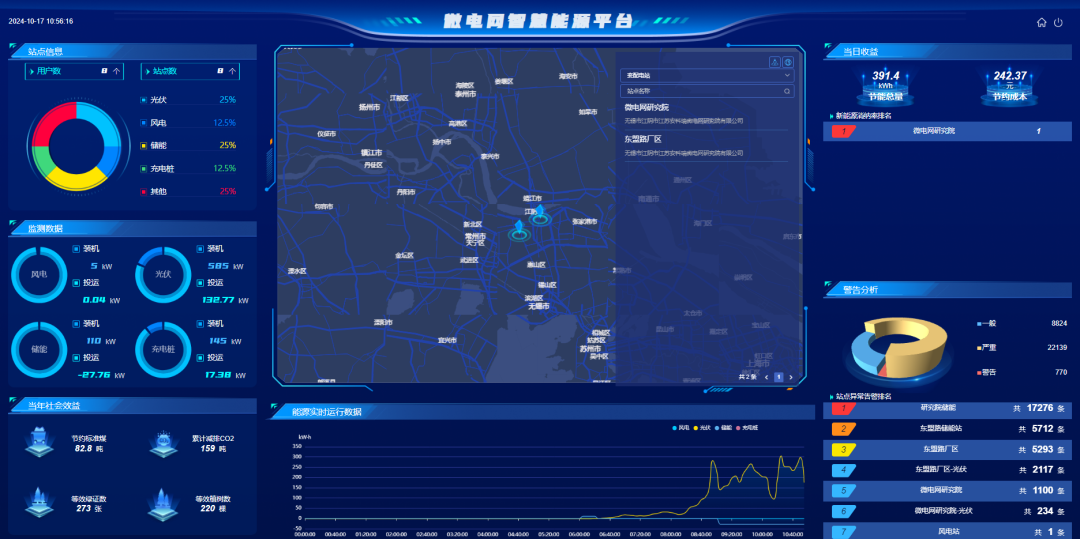 4、智慧能源管理平臺:基于AI智能算法,配置多種運行策略,下發至協調控制器,實現光儲充的優化調度;并實現站點發電、用能、設備監測、展示與管理。
